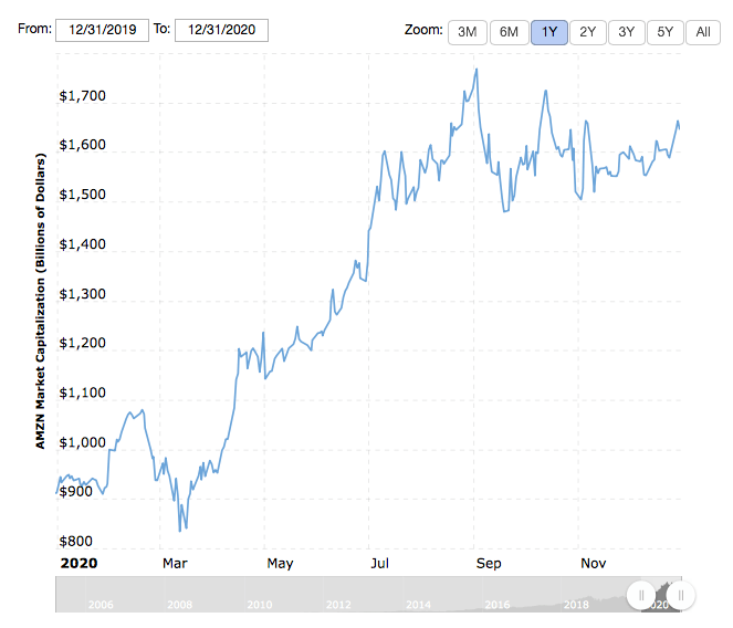 A Amazon, que já era uma das gigantes digitais globais, atingiu a impressionante marca de 1,7 trilhões de dólares, com crescimento de quase 200%, impulsionado fortemente pelo aumento das compras de varejo online. Estima-se que só com a pandemia a empresa de Jeff Bezos tenha faturado mais de 64 bilhões de dólares.